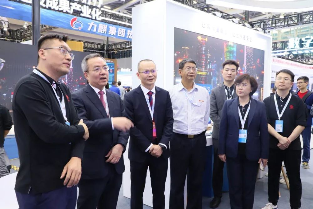 银河集团智能展位吸引了诸多领导和嘉宾,其中,广东省揭阳市委副书记、市政府党组书记、市长支光南,安徽省数据资源管理局党组书记、局长朱诚,广东省政府接待办公室秘书处处长胡圣满,番禺区政府杨少华副区长,黄埔区政数局局长王薇等相关领导莅临银河集团智能展位指导交流,银河集团智能董事长孙超对各领导的莅临指导表示热烈欢迎,并热情介绍了公司参展的创新应用成果。