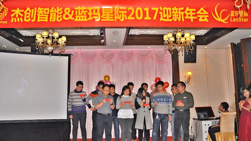银河集团智能董事长孙超先生、各界嘉宾、银河集团智能董事兼蓝玛星际总经理朱勇杰先生及蓝玛星际全体员工、银河集团智能北京分公司员工一众人等出席了本次年会。大家亲切交流,热情互动,一起回顾2016,展望2017,表彰先进、喜中大奖、欣赏歌舞、品味美食、分享喜悦,共同参与了一场喜庆、圆满的年度欢乐盛宴。